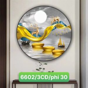 Đèn tranh hắc tường 550 + con hươu trắng -30cm x 25cm