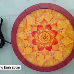Đèn tranh tròn hình hoa văn ánh sáng vàng đường kính 20cm dày 3,5 cm